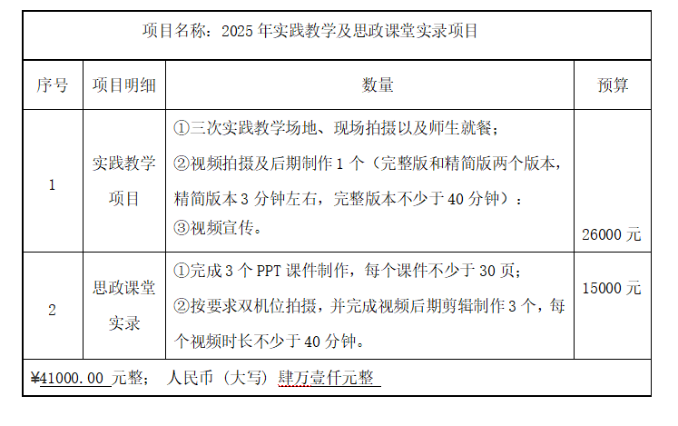 2.项目名称:2025年实践教学及思政课堂实录项目