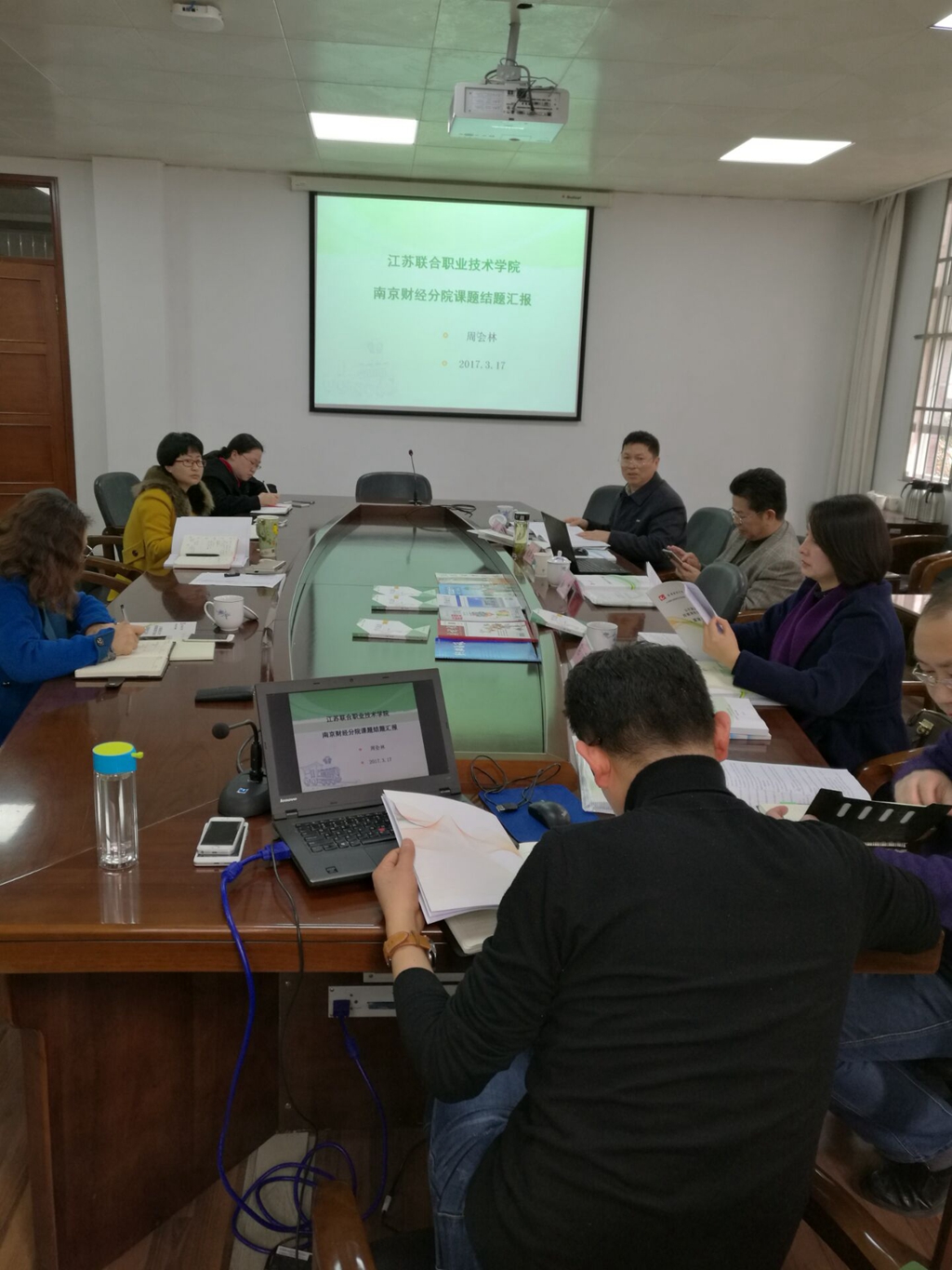 3月17日下午,我校在莫愁路校区召开了江苏省联合职业技术学院课题结题论证会。参与本次课题结题鉴定的专家有江苏联合职业技术学院徐伟副处长,徐州财经高等职业学校原副校长、副研究员刘景忠,南京工程高等职业学校南亲江教授和南京市职教教研室张玲科长和秦伟主任。本次会议由学校教学科研部贾凌燕副主任主持。刘辉副校长、教学科研部马原副主任以及课题组成员出席了此次会议。