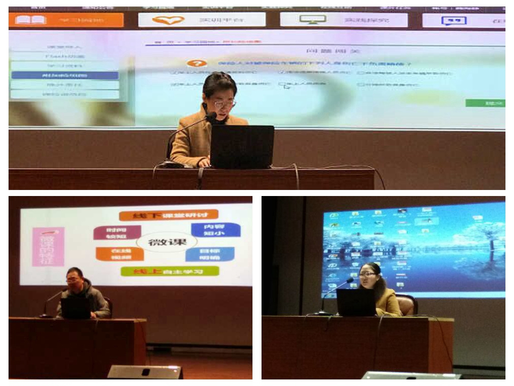 讲座中,王心同老师分享了自己参加全国信息化比赛的体会和经验。她把优秀的团队组建比成优秀导演、编剧和演员的组合。“导演”负责课题整体设计,因为教学设计是灵魂,所以一定要有一定创意;“编剧”要有技术含量,信息化手段是精髓,要用各种信息化手段制作比赛课件;“演员”则需要完美演绎,要有激情,现场展示是一种升华。王心同老师将大赛的成绩归为是正确的教学目标、合理的教学设计、恰当的信息化手段、庞大的信息化资源和目标一致的团队合作的结果。吕志攀老师以六个设问统领全篇,生动全面地解释了微课的定义、特征、设计和制作、应用和评价,为本次参加微课设计与应用比赛的老师提供了丰富的信息资源,同时也分享了很多微课制作的技巧。刘俊老师则从实战出发,独辟蹊径,分享了个人独特的备赛和参赛的经验教训。面对这些宝贵经验的总结,老师们心里满是大写的服气和钦佩,也很欣慰有这么好的学习平台和机会。