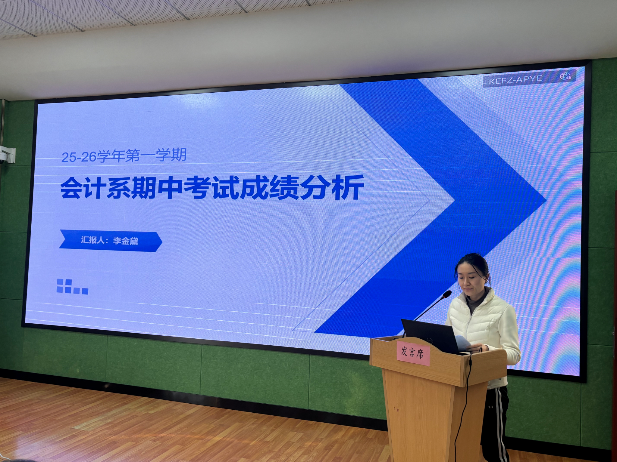 在本次会议中,教学工作部副主任夏书苑、会计系副主任李金黛、信息艺术系副主任史明岑、金融系副主任戴颖、现代服务系副主任何莲莲依次围绕本系(部)期中学情展开详细汇报。各位主任通过翔实的数据对比,全面展现了教学整体情况,分析了学生的群体特点与个体差异,梳理出教学工作中的共性问题和个性短板。同时结合专业特色,提出针对性改进思路,为后续提升教学质量指明了方向。